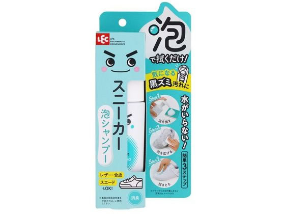 【商品説明】泡で拭くだけ!気になる黒ズミ汚れに水がいらない!【簡単3ステップ】Step1.泡を出すStep2.泡を広げるStep3.拭きとる※ブラシ・クロスは付属しませんレザー・合皮 スエードもOK!消臭効果。泡で汚れを拭きとる、スニーカー用のクリーナーです。水洗い不要なので、玄関先でさっとキレイ!レザーや合皮、スエードなど様々な素材のスニーカーに使用できます。保湿成分(尿素)を配合。【仕様】●フローラルサボンの香り●内容量:150ml【使用方法】1.泡を出すクリーナーをブラシやタオル等に適量プッシュする。2.泡を広げる/こする泡をスニーカー表面全体に広げる。※放置しない3.拭きとる泡が表面に残った状態で、吸水力の高いクロスで拭きとる。※汚れが落ちない場合は繰り返す。最後に日陰で自然乾燥させる。※使用時はポンプ下部のストッパーを外してください。シミや色落ちが起きる場合がありますので、必ず目立たない部分で試してからご使用ください。小石や砂・泥などの大きな汚れは、乾いたブラシであらかじめ落としてください。乾いた状態のスニーカーに使用してください。※タワシ等の毛の固いブラシや、汚れの付いたブラシは使用しないでください。キズの原因になります。※原液が付いたまま放置すると、シミができたり変色する場合があります。※キズが原因の汚れ、経年劣化による黄ばみは落ちません。※スエード・ヌバック等の起毛革の場合は吸水しやすいため手早く作業し、自然乾燥後に専用ブラシでブラッシングして革を起こしてください。【注意事項】用途以外に使用しないでください。部分的に使用すると色落ちやシミになる場合があります。万一飲み込んだ場合は水を飲んでください。目に入った場合はすぐに流水で洗い流してください。いずれの場合も専門医にご相談ください。ブラシやタオルでこする際は素材を傷めないようやさしく行ってください。幼児・ペットの手の届かないところに保管してください。直射日光や高温、凍結を避けて保管してください。廃棄時は、各自治体の定める方法に従って処理してください。【備考】※メーカーの都合により、パッケージ・仕様等は予告なく変更になる場合がございます。【検索用キーワード】レック れっく LEC レック激落ちくんスニーカースプレー レック 激落ちくん スニーカースプレー れっくげきおちくんすにーかーすぷれー レックゲキオチクンスニーカースプレー 靴クリーナー くつくりーなー 靴磨き くつみがき 汚れ落とし よごれおとし レザー 合皮 スエード 1個 本体 ほんたい 150ml 150ミリリットル 水不要 泡長持ち 保湿成分配合 消臭 フローラルサボンの香り ふろーらるさぼんのかおり 簡単に靴きれい 水がいらない靴用洗剤 おでかけ前靴きれい 洗剤 衣料用洗剤 dcl_06 R914LA泡で汚れを拭くだけ、簡単に使えるスニーカー用のシャンプー
