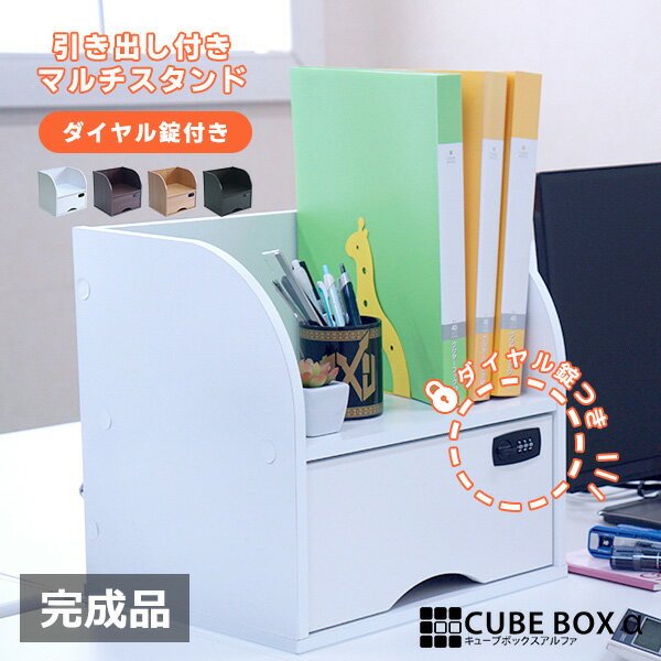 【完成品】 キューブボックスα ダイヤル鍵&引き出し付き マルチスタンド 【送料無料】完成品 キューブボックスα ダイヤル鍵付き マルチスタンド 引き出し付き / 卓上 収納 木製 デスク上 デスク周り 整理整頓 小物収納 卓上チェスト ブックスタンド ファイルスタンド