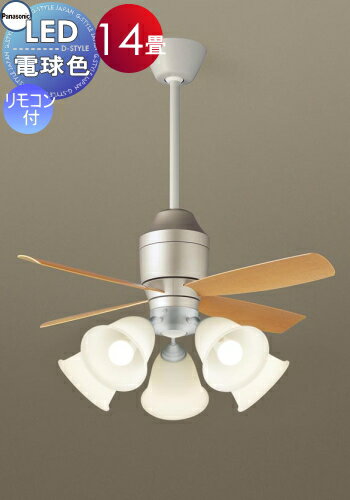 吊下型 LED(電球色) シーリングファン 直付ボルト取付専用 風量4段切替・風向切替・1/fゆらぎ・3時間タイマー照明 ライト 天井照明 おしゃれ パナソニック Panasonic シーリングファンライト XS77141K プラスチック本体シルバーメタリック プラスチック羽根ライトナチュラル木調 32度までの傾斜天井に取付可能 ~14畳 ※リモコン付