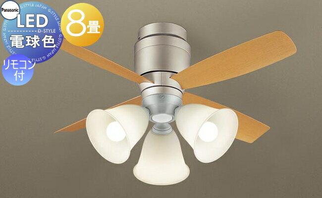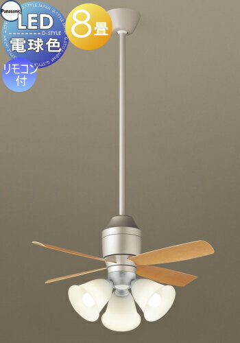 吊下型 LED(電球色) シーリングファン 直付ボルト取付専用 風量4段切替・風向切替・1/fゆらぎ・3時間タイマー照明 ライト 天井照明 おしゃれ パナソニック Panasonic シーリングファンライト XS77244K プラスチック本体シルバーメタリック プラスチック羽根ライトナチュラル木調 32度までの傾斜天井に取付可能 ~8畳 ※リモコン付