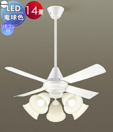 吊下型 LED(電球色) シーリングファン 直付ボルト取付専用 風量4段切替・風向切替・1/fゆらぎ・3時間タイマー照明 ライト 天井照明 おしゃれ パナソニック Panasonic シーリングファンライト XS75140K プラスチック本体ホワイト プラスチック羽根乳白 32度までの傾斜天井に取付可能 白熱電球100形5灯器具相当/~14畳 ※リモコン付