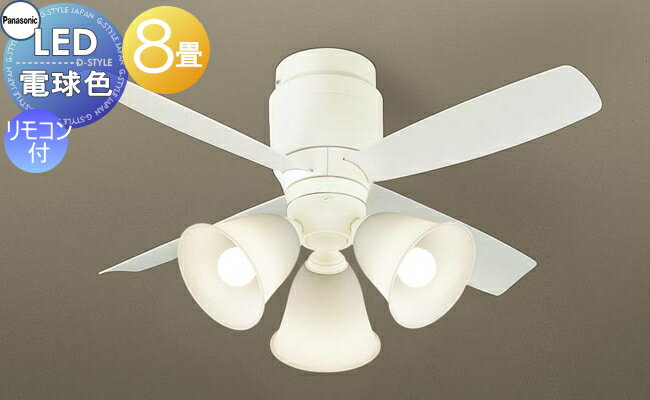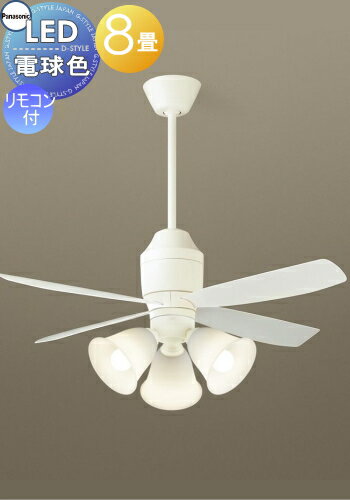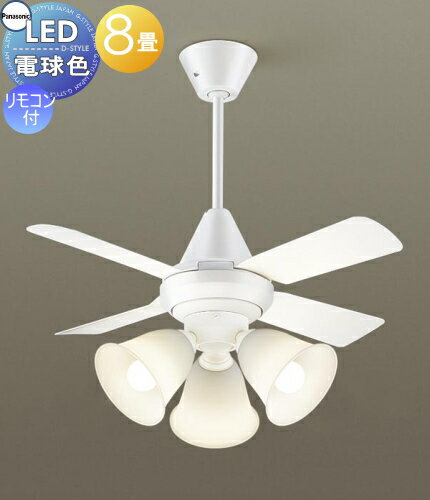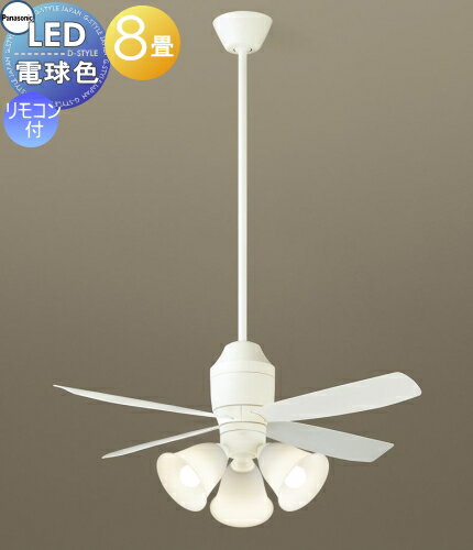 吊下型 LED(電球色) シーリングファン 直付ボルト取付専用 風量4段切替・風向切替・1/fゆらぎ・1~6時間(1時間単位)タイマー照明 ライト 天井照明 おしゃれ パナソニック Panasonic シーリングファンライト XS95043K プラスチック本体ホワイトつや プラスチック羽根ホワイトつや 32度までの傾斜天井に取付可能 ~8畳 ※リモコン付