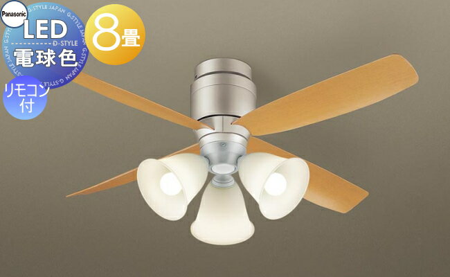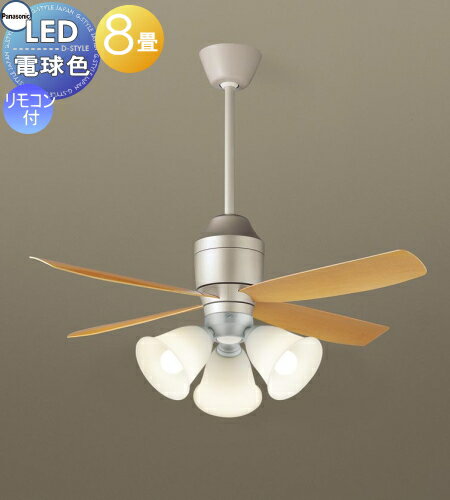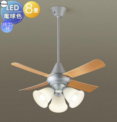 吊下型 LED(電球色) シーリングファン 直付ボルト取付専用 風量4段切替・風向切替・1/fゆらぎ・3時間タイマー照明 ライト 天井照明 おしゃれ パナソニック Panasonic シーリングファンライト XS72344K プラスチック本体シルバーメタリック プラスチック羽根ライトナチュラル木調 32度までの傾斜天井に取付可能 ~8畳 ※リモコン付