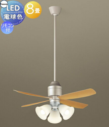 吊下型 LED(電球色) シーリングファン 直付ボルト取付専用 風量4段切替・風向切替・1/fゆらぎ・3時間タイマー照明 ライト 天井照明 おしゃれ パナソニック Panasonicシーリングファンライト XS72344K プラスチック本体シルバーメタリック プラスチック羽根ライトナチュラル木調 32度までの傾斜天井に取付可能 ~8畳 ※リモコン付