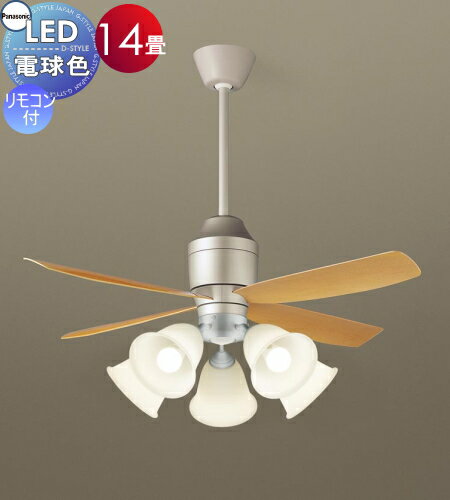吊下型 LED(電球色) シーリングファン 直付ボルト取付専用 風量4段切替・風向切替・1/fゆらぎ・3時間タイマー照明 ライト 天井照明 おしゃれ パナソニック Panasonicシーリングファンライト XS72541K プラスチック本体シルバーメタリック プラスチック羽根ライトナチュラル木調 32度までの傾斜天井に取付可能 ~14畳 ※リモコン付