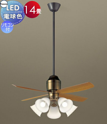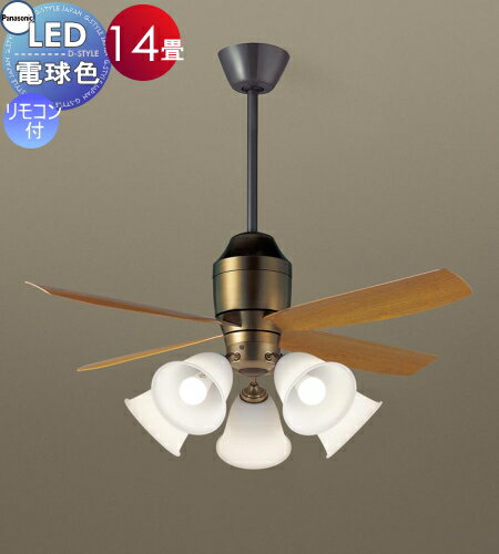 吊下型 LED(電球色) シーリングファン 直付ボルト取付専用 風量4段切替・風向切替・1/fゆらぎ・3時間タイマー照明 ライト 天井照明 おしゃれ パナソニック Panasonicシーリングファンライト XS73142K プラスチック本体金色古味仕上 プラスチック羽根ミディアムオーク調 32度までの傾斜天井に取付可能 ~14畳 ※リモコン付