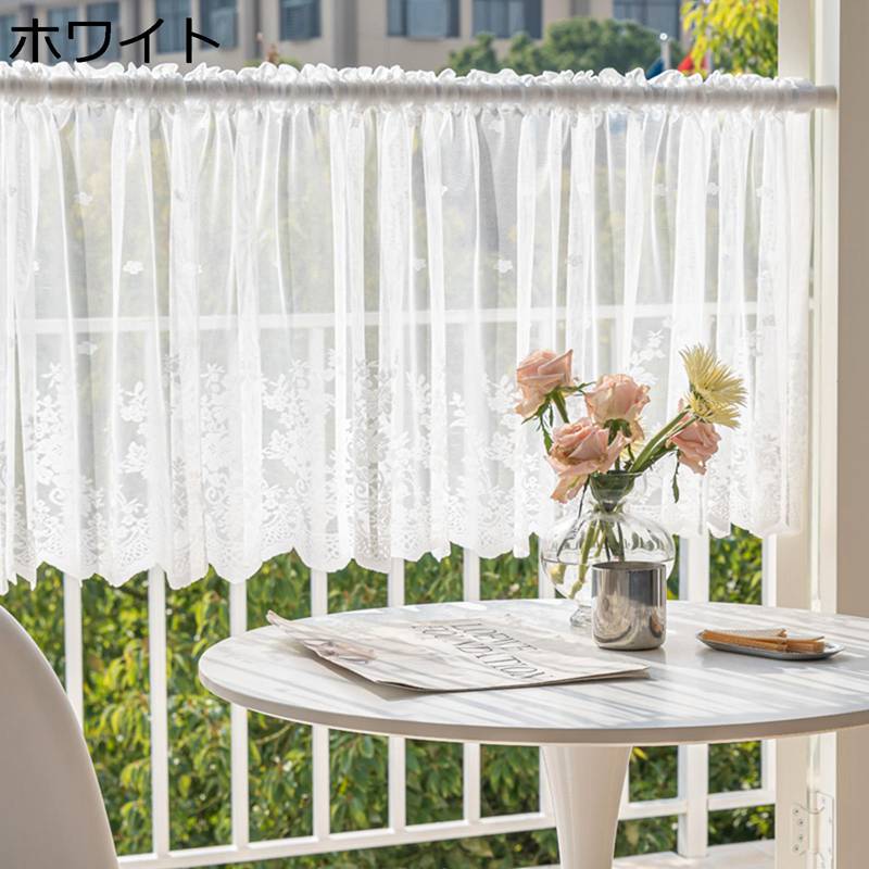 カフェカーテン 小窓用 透け感 遮像 省エネ ショートカーテン 薄手 刺繍 レース 喫茶店 洗面所 出窓 パウダールーム カフェ屋 目隠し 装飾 インテリア 誕生日 ギフト 引越し祝い 突っ張り棒なし