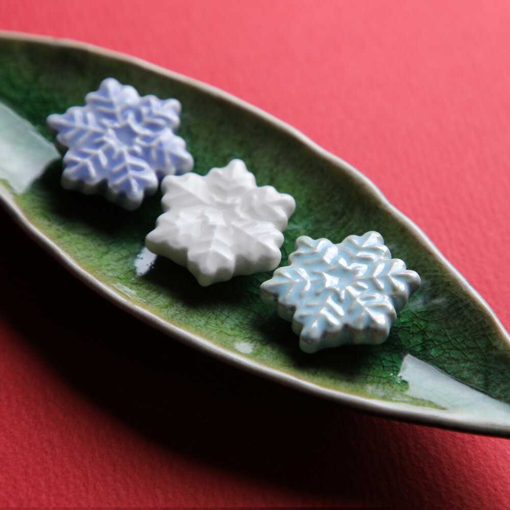 イホシロ窯が手がける「雪の結晶 星」。雪の結晶をモチーフにした小ぶりなかわいらしい箸置きです。表面が立体的に浮き出ておりキラキラと光を反射します。食卓にそっと置いてある箸置きですが、箸置きの選び方にも季節感やもてなしの心が伝わってきます。気の利いた演出には食卓での話題がはずむきっかけにもなりまし時には人の人生を変える魔法のアイテムにもなります。 【イホシロ窯】イホシロ窯は、緑豊かな町、岐阜県瑞浪市にある窯元です。創業は1960年、開窯は2007年です。マスターズクラフト(株)の社内工房として2007年にスタートし、現在は20数名の職人が日々可愛らしい箸置きを作っています。創業当初からの想いは、“心ときめく器づくりをめざして”です。大量生産や機械加工の方法はとらず、ひたすら手でものを作っています。サスティナビリティを大切にしたいとの思いから太陽光発電設備を設置し、ほぼ100%太陽光エネルギーで焼いています。サイズ:約32φx10mm重量:10g材質:陶器生産国:日本(美濃焼)関連キーワード:箸置き 陶器 美濃焼 岐阜県 焼き物 カトラリー かわいい 小さめ 小ぶり コンパクト ミニチュア 雪の花 雪の華 雪華 雪の結晶 六花 星 冬 シーズン 季節 日本製 made in japan▼ 同時に見られている商品 ▼