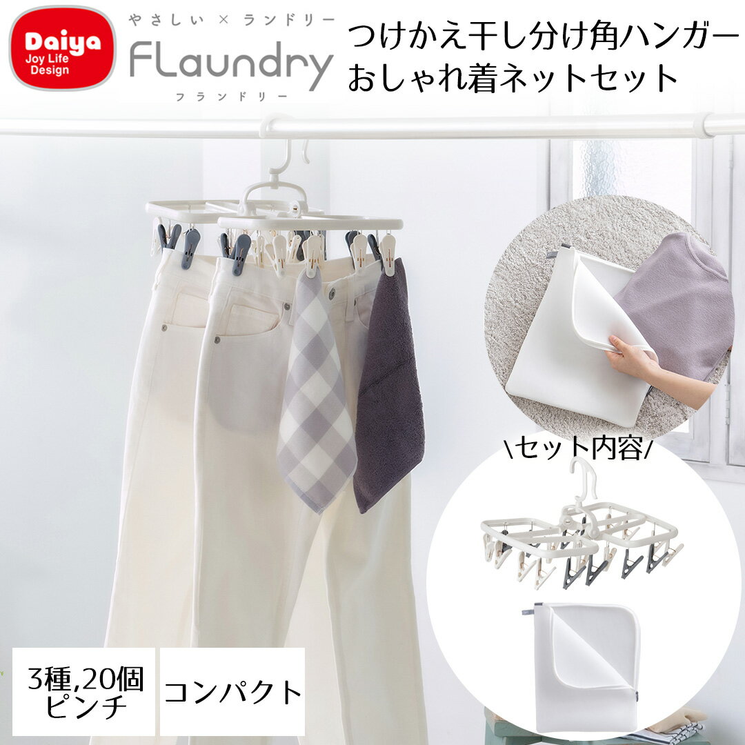 おしゃれ着をやさしく洗って干す 洗濯ネット と 20ピンチハンガー【 エントリーでポイント最大5倍 10/24(金)20:00~10/27(月)9:59まで 】つけかえ干し分け角ハンガー20 ネット セット Daiya | おしゃれ着 衣替え ランドリーネット 秋物 冬物 秋冬物 ホームクリーニング お手入れ 大きい メンズ レディース 無蛍光 生成り 高耐熱