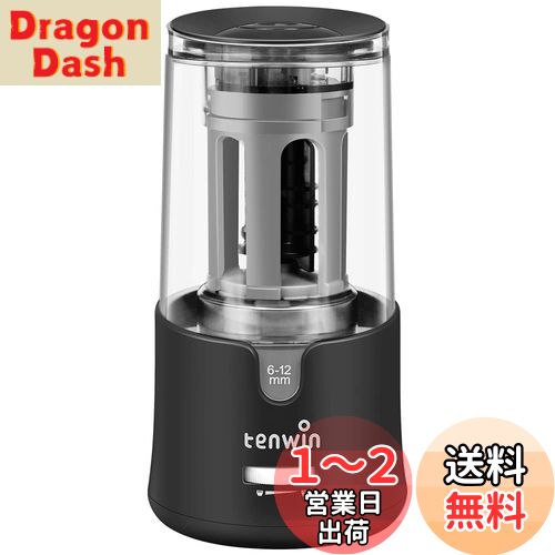 【送料無料】Tenwin電動シャープナー 子供用の鉛筆削り 強いスパイラルカッター 6-12mmの色鉛筆用の電動鉛筆削り ムダ削り防止機能 子供 学校 事務用(黒) ブラック