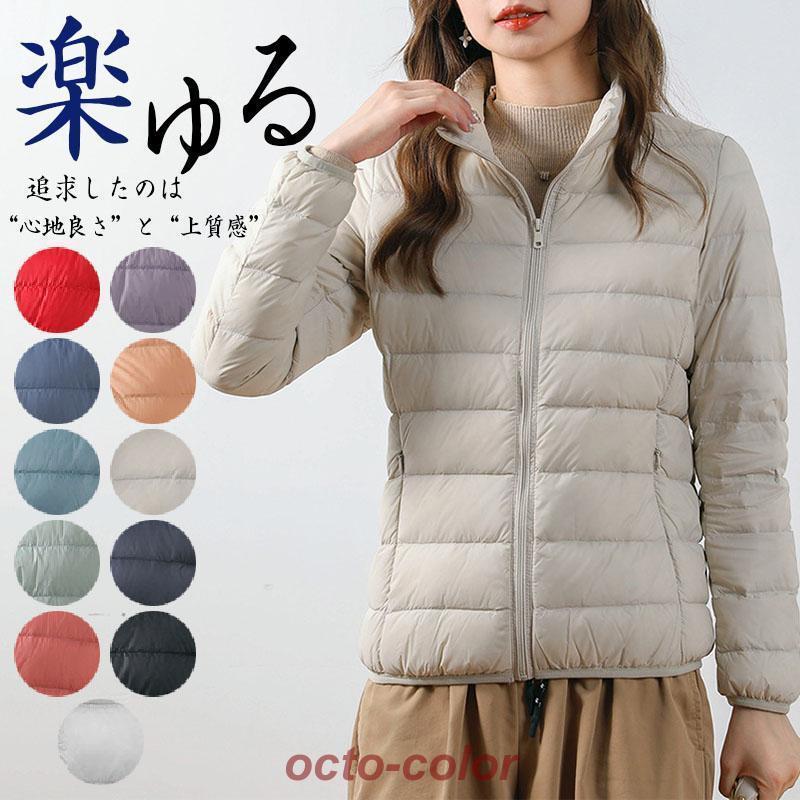 ダウンジャケット レディース 軽量 ダックダウン ウルトラ ブルゾン アウター ノーカラー ライトダウン ショート おしゃれ 秋冬 防寒 暖かい 撥水