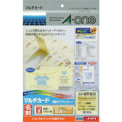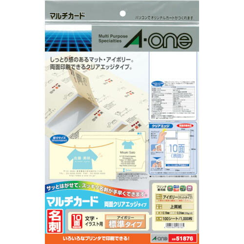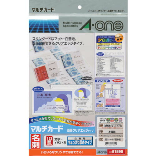 プリンター用紙 名刺・カード用紙 マルチプリンタータイプ直送・代引不可 エーワン マルチカード 各種プリンター兼用紙 両面クリアエッジタイプ 白無地 厚口 A4判フチまで印刷10面 名刺サイズ 51678 1冊(50シート) 【×10セット】 別商品の同時注文不可