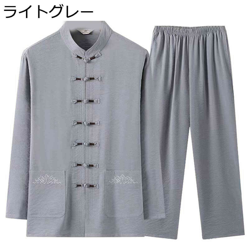 太極拳服 メンズ チャイナ服 長袖 唐装 漢服 夏 通気性 軽い カジュアル 大きいサイズ チャイナ風 上下セット 伝統服 武術シャツ カンフー衣装 結び釦シャツ ポケット付き プレゼント お出掛け 旅行