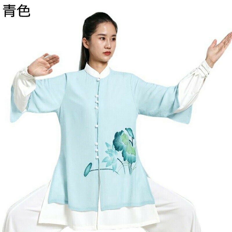 太極拳服 武術シャツ レディース メンズ 蓮華柄 プリント 手描き 長袖 唐装 柔らかい コンフォート 功夫服 ファッション 男女兼用 トップス 漢服 表演服 春夏秋 朝稽古 スポーツ 演出用