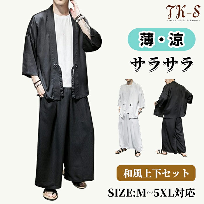 シャツ+パンツ セットアップ 甚平 七分袖 夏用 和風 花火大会【限定半額OFFクーポン】M~5XL セットアップ メンズ 甚平 七分袖 夏用 上下セット シャツ パンツ さらさら 涼しい 和式 羽織 浴衣 袴風ズボン じんぺい 薄手 大きいサイズ 部屋着 和風 花火大会 作務衣 浴衣風 夏祭り 半被 半纏 ゆったり感 お洒落 TK-S