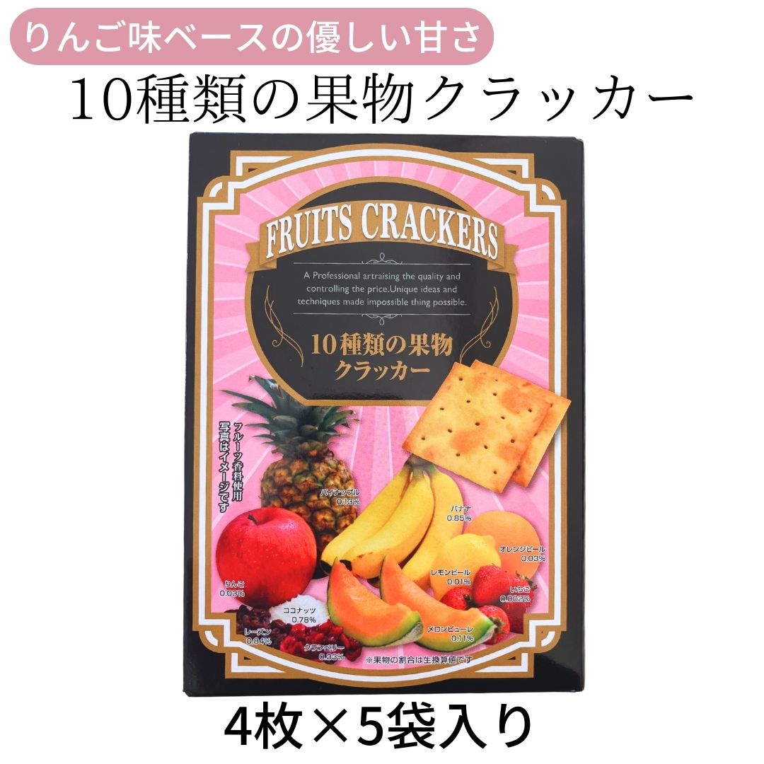 果物が織りなす、ほどよい甘みのクラッカーです。【10種類の果物クラッカー 1箱(4枚×5袋)】前田クラッカー 前田製菓 フルーツ香料仕様 バナナ パイナップル りんご ココナッツ レモンピール オレンジピール いちご メロンピューレ レーズン クランベリー