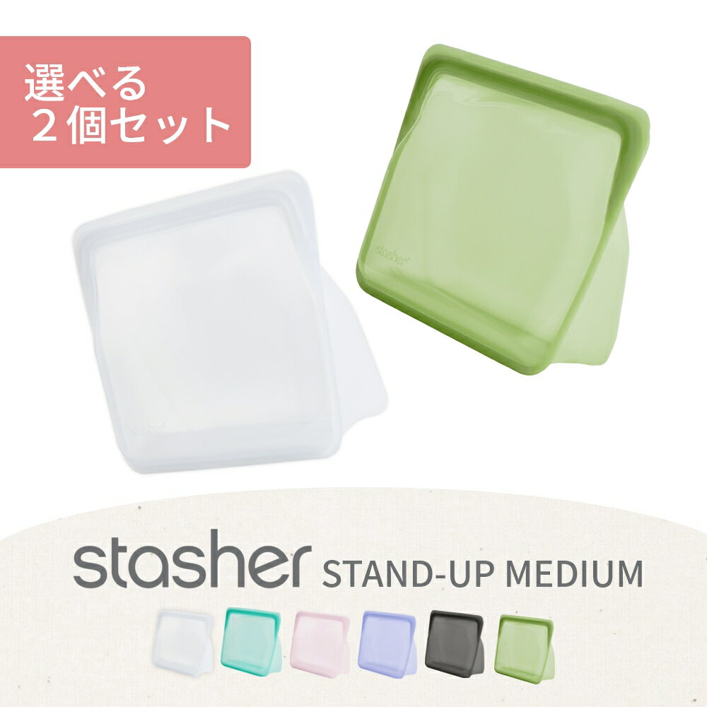 【着後レビューでアイススプーン/今治タオル/浴室用ブラシから選べる特典】【送料無料】【ラッピング】キッチン/キッチン雑貨/台所/料理/調理/時短/エコ/節約【レビュー特典】 スタッシャー 〔 スタンドアップ ミディアム 1.6L 2個セット 〕 stasher 耐熱 冷蔵 冷凍 調理 料理 エコ 時短 シリコーン シリコン フリーザ―バッグ ジップバッグ ロック ジップ セット SET 電子レンジ オーブン 食洗機 密閉
