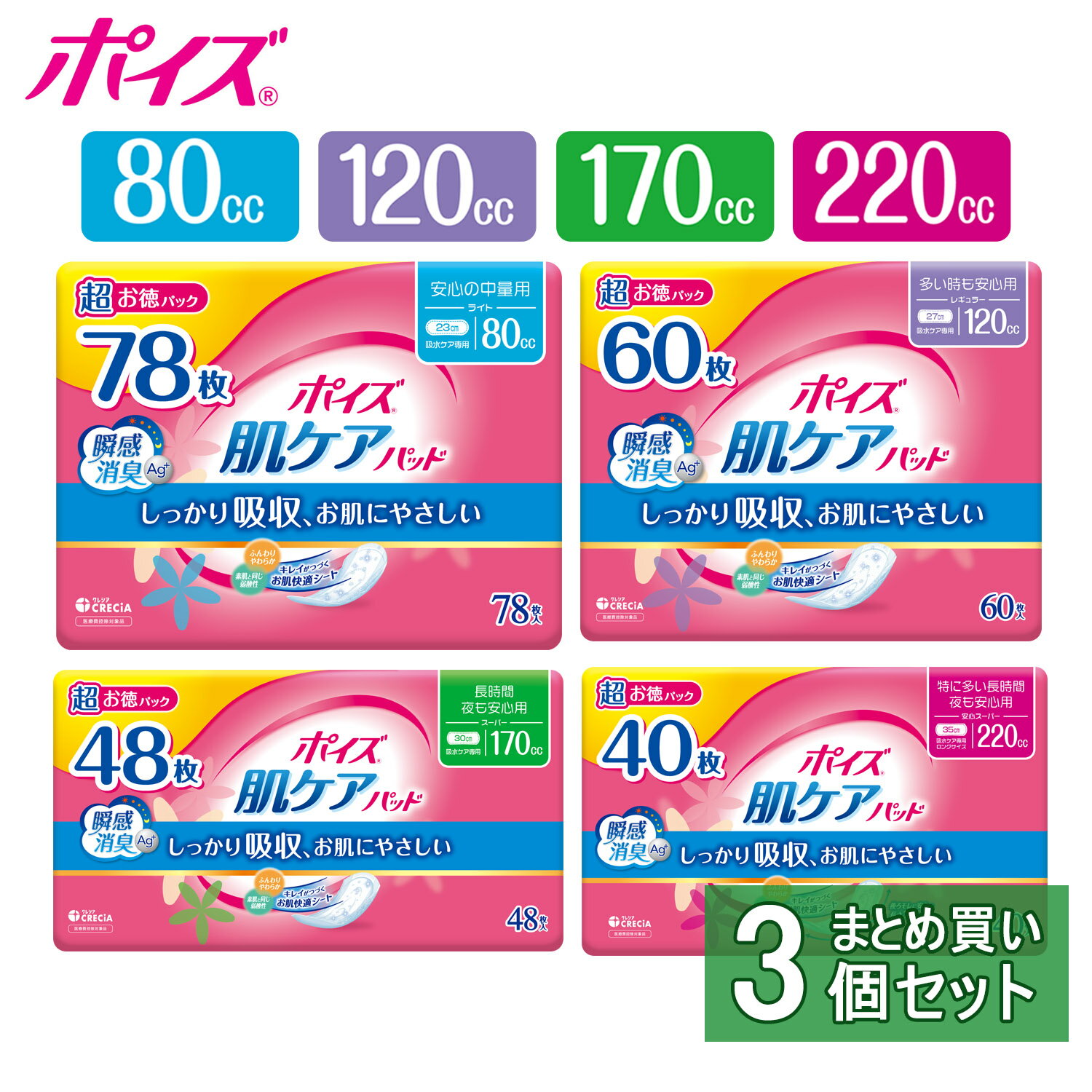 ポイズ 吸水パッド 軽失禁パッド 尿漏れパッド 吸水ケア 尿もれ 尿モレ ポイズパッド 80cc ライト【3個セット】ポイズ 肌ケアパッド 超お徳パック ポイズ 吸水パッド 軽失禁パッド 尿漏れパッド 吸水ケア 尿もれ 尿モレ ポイズパッド 80cc ライト 80cc/78枚 120cc/60枚 170cc/48枚 220cc/40枚
