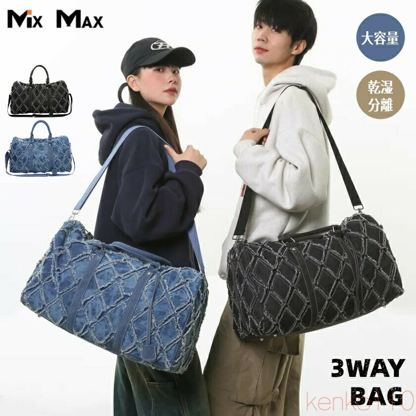 国内旅行 海外旅行 どちらでも使える ボストンバッグ 二泊三日【送料無料】旅行バッグ 大容量 トラブルかばん 3way 個性的 デニム タッセル 手提げ 肩かけ 一泊二日 底鋲付き ボストンバッグ マザーズバッグ 小物整理 機内持ち運び 撥水