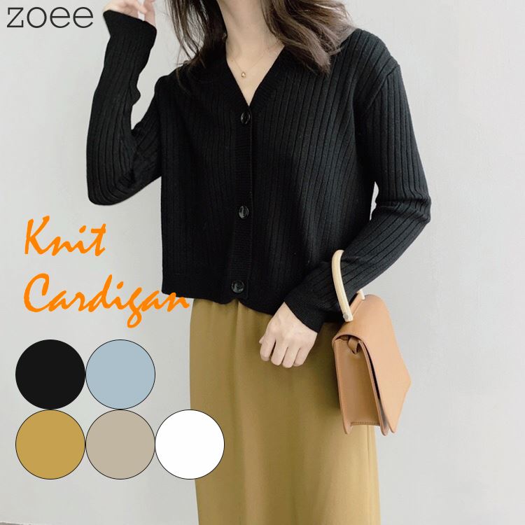 新作 きれいめスタイルにおすすめなリブ編みニットカーディガンニットカーディガン 秋冬 トップス レディース リブ編み ショート丈 無地 長袖 ブラック/ブルー/イエロー/ベージュ/ホワイト フリーサイズ 【メ】 f1v06