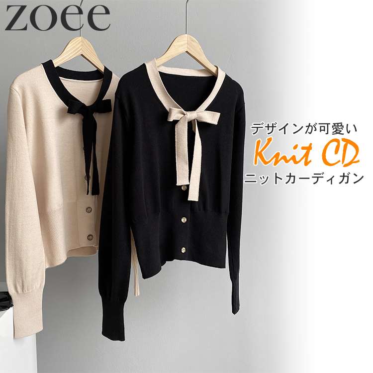新作 リボンデザインの可愛いニットカーディガンニットカーディガン レディース 秋春 トップス セーター リボンデザイン 可愛い お洒落 ピンクベージュ/ブラック フリーサイズ g1v02