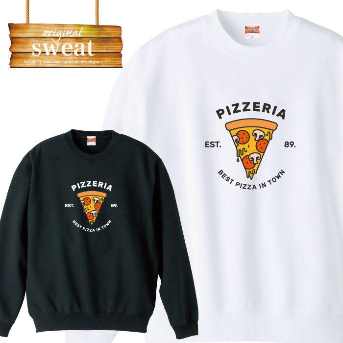 【PIZZAデザイン・プリントスウェットトレーナー 】スウェット トレーナー 長袖 pizza ピザ ジャンクフード オリジナル 男女兼用 メンズ レディース アパレル 秋冬 裏パイル生地 綿100% S M L XL XXL 大きいサイズ ビックシルエット オーバーサイ