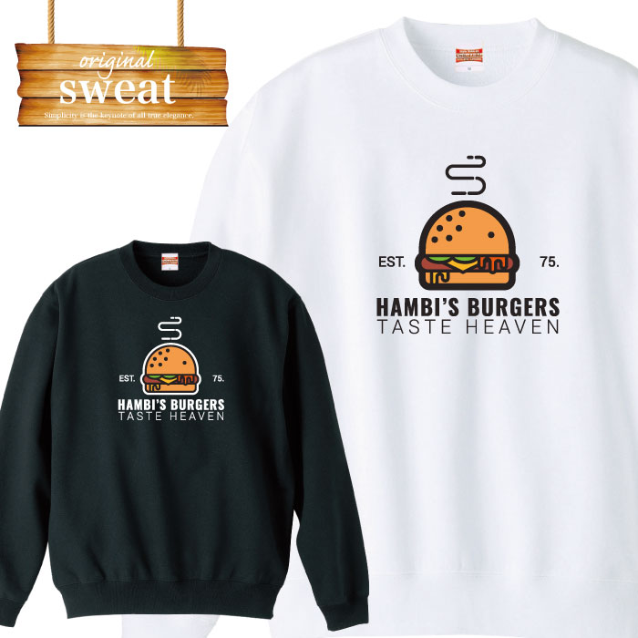【ハンバーガーデザイン・プリントスウェットトレーナー 】スウェット トレーナー 長袖 ハンバーガー ジャンクフード オリジナル 男女兼用 メンズ レディース アパレル 秋冬 裏パイル生地 綿100% S M L XL XXL 大きいサイズ ビックシルエット オーバーサ