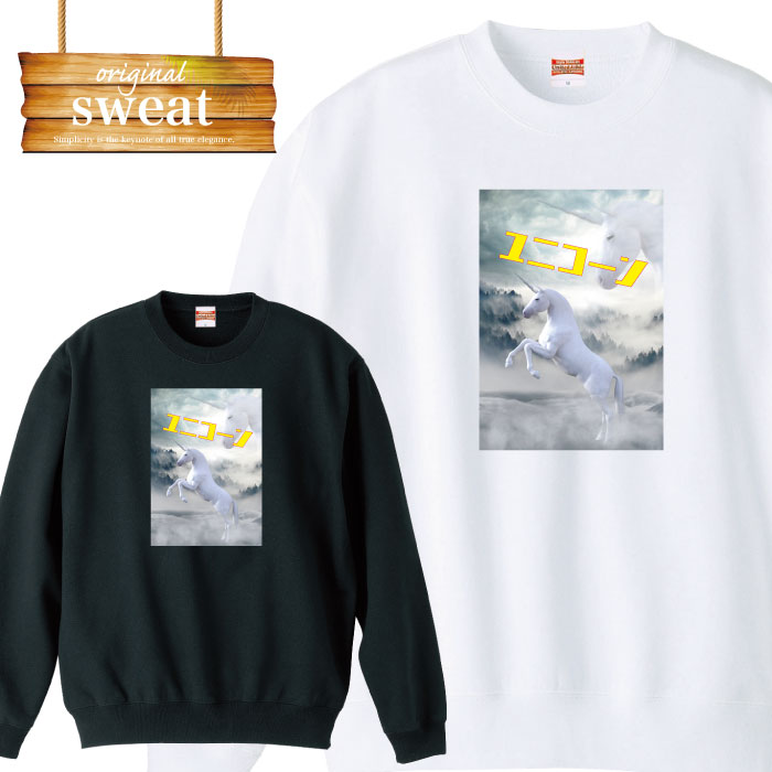 【デザイン・プリントスウェットトレーナー 】アパレル 秋冬 裏パイル生地 綿100% S M L XL XXL 大きいサイズ ビックシルエット オーバーサイズスウェット トレーナー 派手 地雷系 ユニコーン unicorn ゆめかわ 原宿系 裏原系 キャラクター ファッション メンズ レディース アパレル ワンポイント 流行 トレンド street ストリート系 hiphop スト系