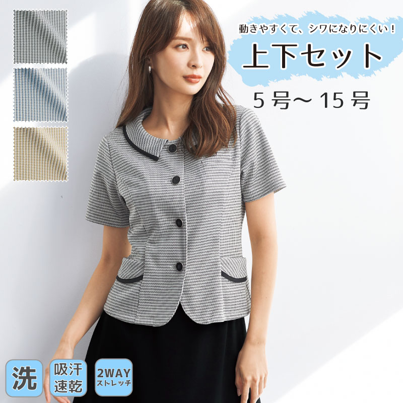 腕まわりが動かしやすくラクラク!春夏も快適な事務服上下セット【5%OFFクーポン対象★10/20限定】事務服 オーバーブラウス 半袖 スカート 上下 セット aラインスカート しわになりにくい ロングスカート ひざ丈 大きいサイズ オフィススーツ 吸汗速乾 クールビズ きれいめ ジョ