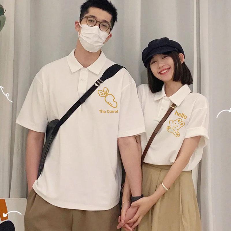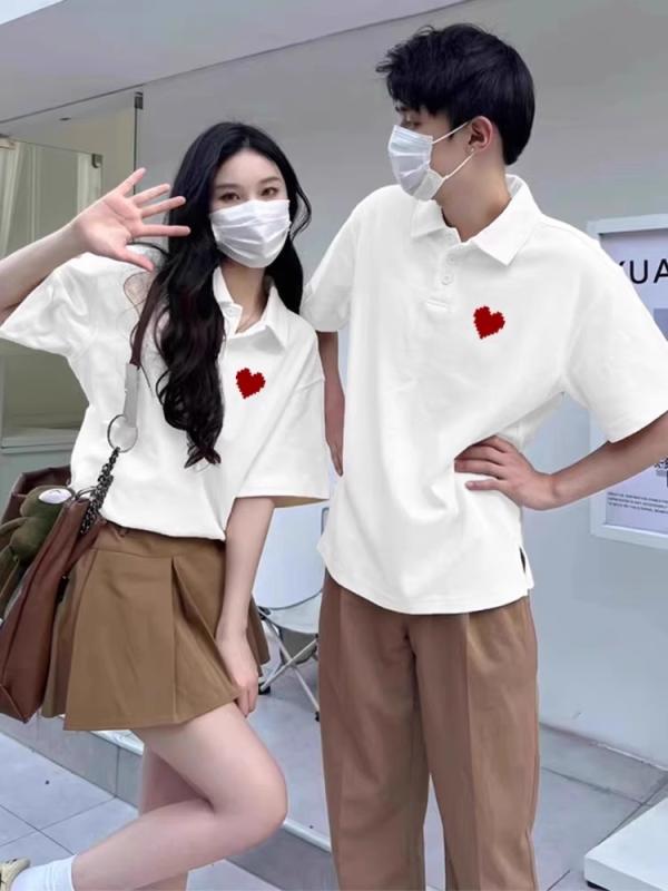 スタイル: カジュアルシーン向け シルエット: ゆったり 柄のテーマ: 愛をモチーフにしたプリント 素材: ポリエステル 袖型: レギュラー 袖丈: 半袖 襟型: ポロ襟 着丈: レギュラー 柄: プリント柄 カラー: メンズホワイト×レディースホワイト.メンズブラック×レディースブラック.メンズホワイト×レディースブラック.メンズブラック×レディースホワイト