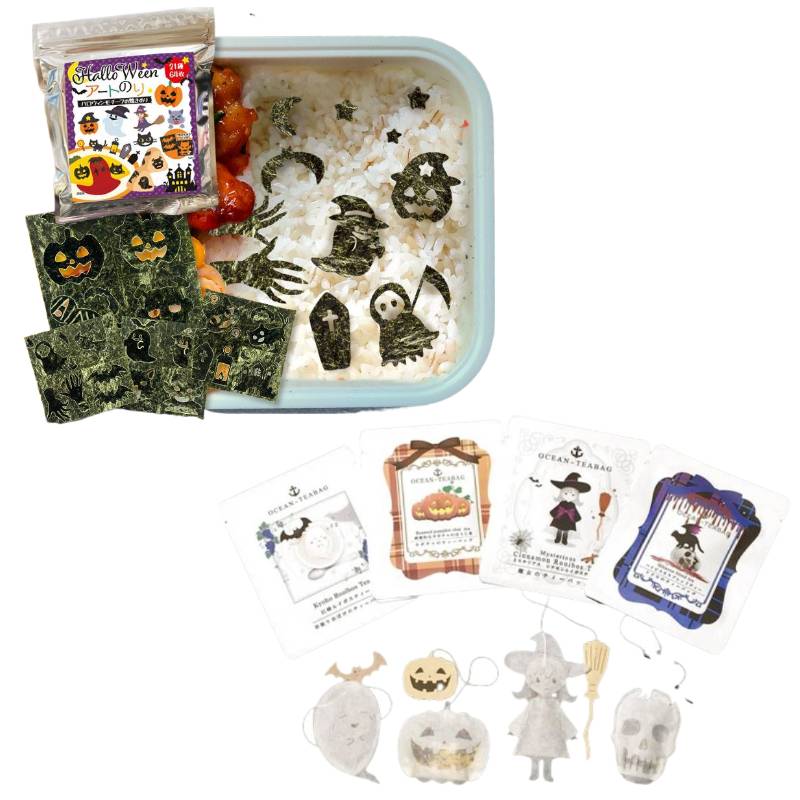 ハロウィーンセット♪弁当用 子ども 男の子 幼児 おべんとう デザインのり 海苔 キャラ弁 デコ弁 簡単 かわいい キッズ アニマル キャラクター 幼稚園 園児 遠足【ハロウィンセット】ハロウィン アートのり 海苔 21種類 ( 切り抜き64枚入 ) 全形2枚分 & オーシャンティーバッグ ハロウィンティーバッグ 4種セット 魔女 死神 フランケンシュタイン ミイラ男 コウモリ ゾンビ 焼き海苔 のり 子供 男の子 お弁当 キャラ弁 デコ デコ弁