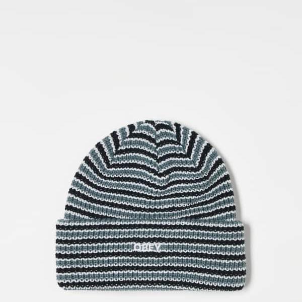 京都のセレクトショップdivaclosetオベイ Obey オベイ・デイビスのブラック&ブルーストライプのビーニー 帽子 メンズ 男性 インポートブランド