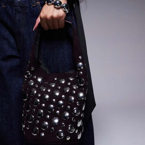 京都のセレクトショップdivaclosetリバーアイランド River Island RIVER ISLAND リバーアイランドのスタッズ付きスエードバケットバッグ(ダークレッド) 帽子 レディース 女性 インポートブランド