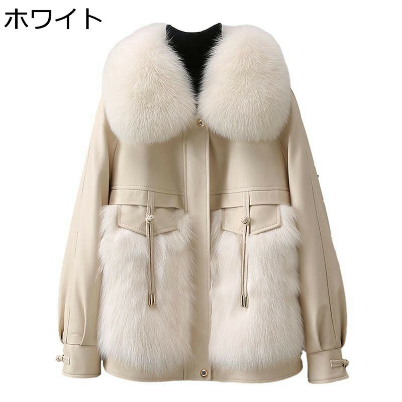 革ジャン レディース 冬服 5XL ファーネック ジップアップ 防寒着 あったか レザージャケット 毛皮一体 ダウンジャケット PUレザー 大きいサイズ かわいい コート オシャレ 厚手 ライダースジャケット 大人 通勤
