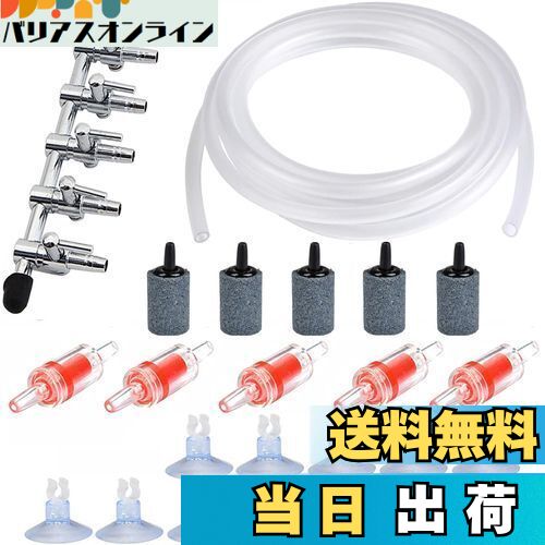 【送料無料】CTRICALVER 水槽 セット, ソフトなチューブは5m, エアチューブ5分岐 & 逆流防止弁& エアーストーン, 10個 水槽 吸盤 アクアリウム バブルカウンター チェックバブル 吸盤 水作水族館 魚タンク