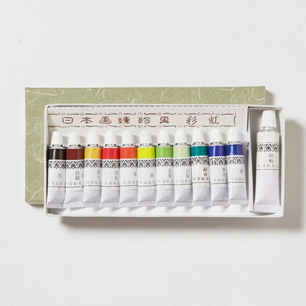 チューブ絵具は、日本画本来の技法である透明・不透明両用に使用できます。色調は鮮やかで、日本画に最適の高級顔料(退色しにくい)を使用しております。粒子は微細、均一で定着材を最も描きやすいように調整しております。 黒/岱赭/黄土/洋紅/朱/黄/若葉/白緑/緑青/群青/藍/胡粉 ※原料の変更により、色味が変わる場合がございます。何卒ご了承ください。 ※モニターやブラウザなどによって、実際の物と色味が異なる場合がございます。 [一般的な使い方] 1.チューブ絵具を絵皿やパレットに出し、好みにより水を混ぜて使います。 入り数 12色 用途 日本画 絵画 絵具 絵の具 顔料 プレゼント ギフト 海外へのお土産 ●メーカーより直送の商品ですので、他ブランドの商品とまとめてご購入いただいた際はブランドごとに追加送料をいただきます。送料につきましてはメールでお知らせいたします。なお、お客様とご連絡がとれない際はキャンセルとさせていただく場合がございます。あらかじめご了承ください。 ●こちらは「ラッピング」及び「代引」対象外の商品となっております。 ラッピングや代引を指定でご購入いただいた場合はご注文をキャンセルさせていただきます。ご了承ください。 ●ご注文後のキャンセル・交換・数量変更などはご対応出来かねます。ご注文前に、今一度ご注文内容・納期・ご住所などをご確認ください。 ●こちらは、取り寄せ商品になります。ご注文のタイミングによっては欠品の場合がございます。あらかじめご了承くださいますようお願い申し上げます。 ◇海外発送について 海外発送をご希望の場合、注文確認後、メールにて別途送料をお知らせいたします。 International Shipping Service Available. we will be notified of the shipping fee by mail. ※Please note that some products are not available for international shipping. Additionally, we do not accept returns or exchanges under any circumstances.カテゴリ一覧 - ブランドから選ぶ(2) - [上羽絵惣]