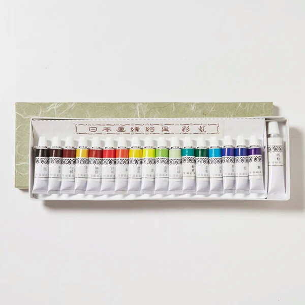 チューブ絵具は、日本画本来の技法である透明・不透明両用に使用できます。色調は鮮やかで、日本画に最適の高級顔料(退色しにくい)を使用しております。粒子は微細、均一で定着材を最も描きやすいように調整しております。 黒/焦茶/岱赭/黄土/黄/濃黄/朱/洋紅/臙脂/胡粉/白緑/若葉/緑青/青葉/浅葱/群青/藍/紫 ※原料の変更により、色味が変わる場合がございます。何卒ご了承ください。 ※モニターやブラウザなどによって、実際の物と色味が異なる場合がございます。 [一般的な使い方] 1.チューブ絵具を絵皿やパレットに出し、好みにより水を混ぜて使います。 入り数 18色 用途 日本画 絵画 絵具 絵の具 顔料 プレゼント ギフト 海外へのお土産 ●メーカーより直送の商品ですので、他ブランドの商品とまとめてご購入いただいた際はブランドごとに追加送料をいただきます。送料につきましてはメールでお知らせいたします。なお、お客様とご連絡がとれない際はキャンセルとさせていただく場合がございます。あらかじめご了承ください。 ●こちらは「ラッピング」及び「代引」対象外の商品となっております。 ラッピングや代引を指定でご購入いただいた場合はご注文をキャンセルさせていただきます。ご了承ください。 ●ご注文後のキャンセル・交換・数量変更などはご対応出来かねます。ご注文前に、今一度ご注文内容・納期・ご住所などをご確認ください。 ●こちらは、取り寄せ商品になります。ご注文のタイミングによっては欠品の場合がございます。あらかじめご了承くださいますようお願い申し上げます。 ◇海外発送について 海外発送をご希望の場合、注文確認後、メールにて別途送料をお知らせいたします。 International Shipping Service Available. we will be notified of the shipping fee by mail. ※Please note that some products are not available for international shipping. Additionally, we do not accept returns or exchanges under any circumstances.カテゴリ一覧 - ブランドから選ぶ(2) - [上羽絵惣]