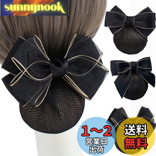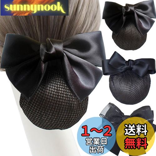 【送料無料】3個セット シニヨンネット バレッタ ネット付き,BetterJonny リボン付きネット ヘアネットリボン おだんご ネット 髪 お団子ネット 髪 ネット 黒 大きめ おしゃれ かわいい レディースヘアアクセサリー 黒 ブラック リボン
