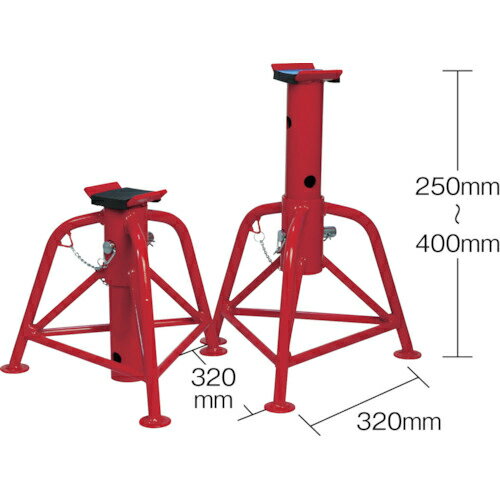 特長:低床タイプなので、最高位の低いジャッキを使用する際や、低い位置で作業する場合などに最適です。また、ゴムパッド付きなので、当たり面に傷を付けづらくなっています。用途:作業時の車体の保持に。仕様:全長(mm):250~400組入数(脚):2耐荷重(t):3組入数(脚):2耐荷重:3t(1脚)高さ:1段階/250mm、2段階/325mm、最高位/400mm(ゴムパッド装着時)本体サイズ:W320×D320×H250mm(最低位時)材質/仕上:スチール ●代表画像について 商品によっては、代表画像を使用している場合がございます。 商品のカラー、サイズなどが異なる商品をイメージ画像として 使用させて頂いている場合がございます。 必ず、商品の品番と仕様をご確認のうえ、ご注文お願いいたいます。 ●北海道・沖縄・離島・一部地域の送料について 別途追加で送料がかかる場合がございます。 送料がかかる場合は、メールにて送料をご連絡させて頂き、 お客様にご了承頂いてからの手配となります。 ●お買上げ明細書の廃止について 当店では、個人情報保護と環境保護の観点から同封を廃止しております。 お買上げ明細書が必要な場合は、備考欄に「お買上げ明細必要」と 記載お願いいたします。 当店からの出荷の場合は、同封にて発送させて頂きます。 (※メーカー直送の場合は、PDFデータをメールさせて頂きます。) 注意事項 ※商品名に【2個セット】等、数量の明記がない場合は1個での販売となります。