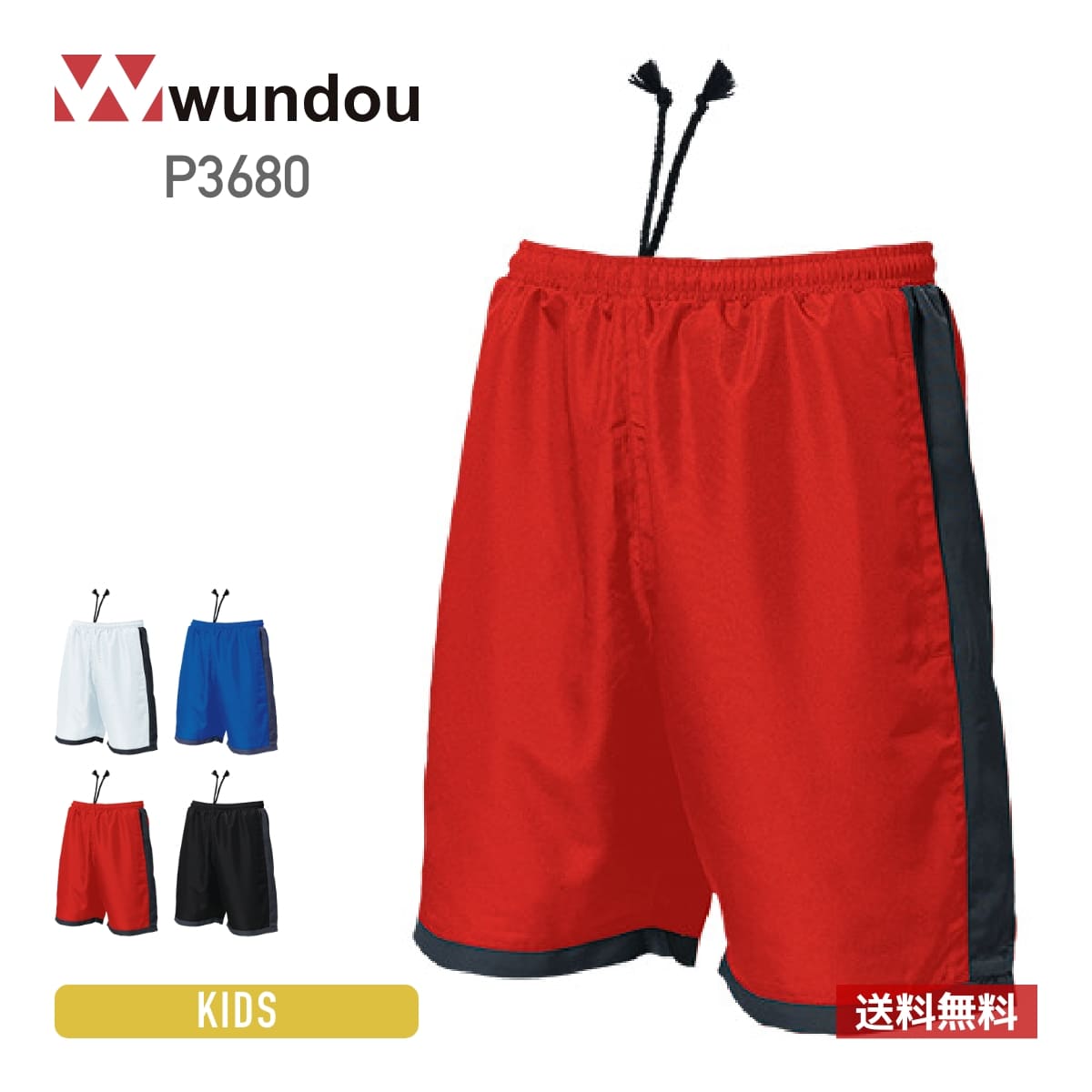 ハーフパンツ ドライ キッズ 吸汗 速乾 ポリエステルパンツ キッズ 無地 wundou ウンドウ バトミントン パンツ P3680 吸汗 速乾 試合 練習 クラブ トレーニング スポーツ チーム ユニフォーム 110 120 130 140 150