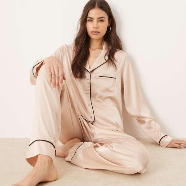京都のセレクトショップdivaclosetエイソス ASOS asos ASOS DESIGN トールサテンシャツ&パンツパジャマセット(シャンパンピンク) 部屋着 レディース 女性 インポートブランド 小さいサイズから大きいサイズまで