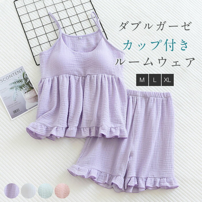 ルームウェア レディース キャミソール カップ付き 春 夏 秋 パジャマ 2点セット 部屋着 上下セット ガーゼ セットアップ 綿 コットン ショート丈パンツ 柔らかい 可愛い ゆったりルームウェア レディース キャミソール カップ付き 春 夏 秋 パジャマ 2点セット 部屋着 上下セット ガーゼ セットアップ 綿 コットン ショート丈パンツ 柔らかい 可愛い ゆったり プレゼント ギフト 贈り物 4色全 送料無料