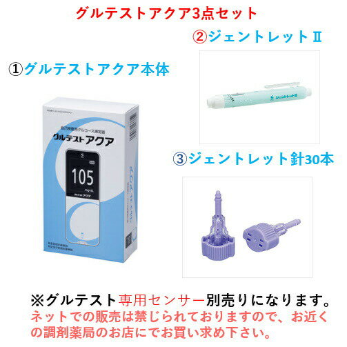 グルテストアクア 自己検査用グルコース測定器3点セット(本体+ジェントレット+ジェントレット針(30本))【測定チップ:別売】