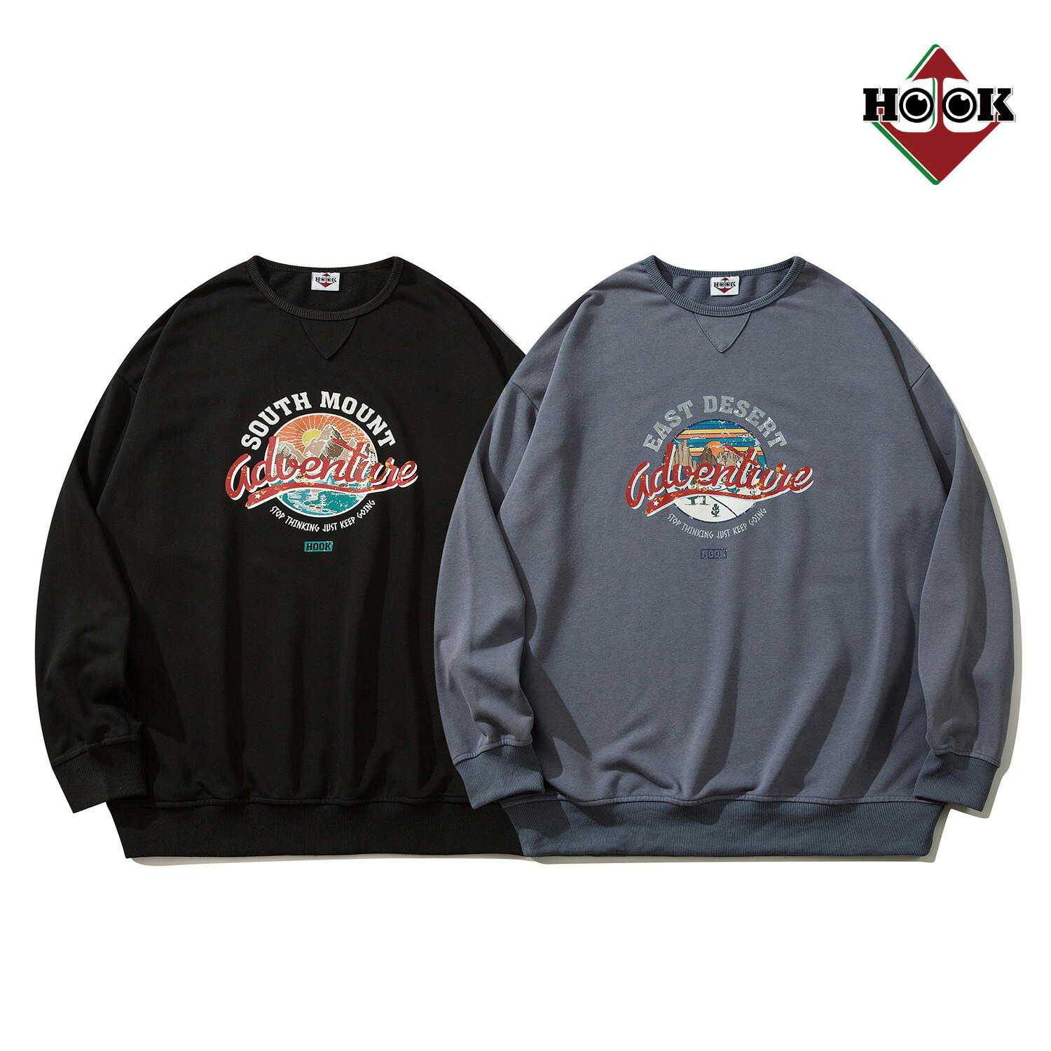 《【HOOK】アメカジヴィンテージ風プリントスウェット 》スウェット トレーナー メンズ レディース ライン メンズ レディース お揃い 服 春 秋 ビッグシルエット カップル ペアルック オーバーサイズ ユニセックス 韓国 ライク オルチャン 英字 アメカジ プリント【HOOK】