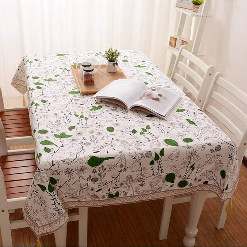 テーブルクロス 食卓カバー 花柄 シェニール フリンジ付き 上品 テーブルマット 長方形 食卓飾り 円形 テーブルクロス ライトグリーン デスクマット 洗濯可能 ダイニング レトロ 和風 撮影用 16
