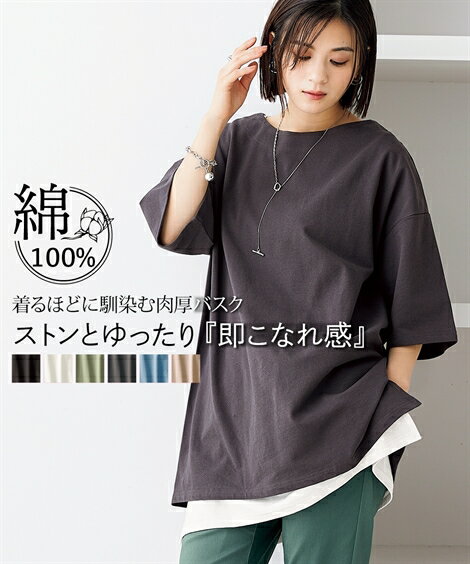 綿100%バスクオーバーサイズ5分袖チュニック(UVカット)<大きいサイズ有> 黒 オフホワイト ダークグレー ミルクベージュ スモーキーグリーン ソフトピンク カラー黒 オフホワイト ダークグレー ミルクベージュ スモーキーグリーン ソフトピンク サイズS~M相当 L~LL相当 3L~4L相当 5L~6L相当 8L相当 10L相当 素材 品質・綿100% 両脇スリット10cm 淡色は透けやすいので、インナーをご着用ください。デザインの特性上ゆったりとしたシルエットとなっております。。透け感・あり・ややあり・なし(淡色は透けやすいのでインナーの着用をお勧めします)伸縮性・あり生地の厚み・普通光沢感・なし季節・春・夏・秋シルエット・ゆったり洗濯機OK ネット使用 原産国 中国製 メーカー品番 ZZY4J25B0322 コメント 【シリーズ累計枚数50,000枚を誇るバスクシリーズがさらに進化。よりバスクらしいしっかりした素材に!新色も増えてパワーアップして再登場♪】世界中で愛されてきた、歴史あるバスク生地。その魅力は肩ひじ張らずに『自然体で楽しめる』こと。そんなバスク生地をもっと身近に楽しんでほしい。そんな想いを込めて、素材に、色に、シルエットにこだわりました。洗うほどに馴染み、味わいを増していく、ずっと愛用したくったり感も楽しめる1枚です。あえてゆったりとしたお作りになっています、ぜひ着心地をお楽しみください。綿100%で素肌にやさしくこれからの季節にぴったりです。■デザインとにかくビッグシルエットが可愛い!!理想のゆるっと感を実現しました!!程よい厚みとハリ感で、体のラインを拾わずシルエットを美しく魅せてくれます。オーバーサイズでもデコルテがきれいに見える絶妙な開きのラウンドネックと、ドロップショルダーで女性らしい印象に。首元は見返し仕様なので、カジュアルになり過ぎず、きれいめコーデにも使いやすいネック仕様です。長め丈でも、サイドスリット入りなのでコーデにも使いやすい♪■素材シルエットをきれいに魅せる、程よいハリ感が魅力のバスク生地。綿100%。洗濯を繰り返し、着込むほどに味わいと風合いが増すバスク生地です。洗濯後もゆがみにくく、着心地の良さをキープして着崩れにくいです。嬉しいUVカット機能付です。■おすすめのスタイリング1枚でさらっと着ても、重ね着にも使いやすい万能アイテムです。ゆるっとしたシルエットはストレートデニムやスラックスなどすとんと落ちるシルエットのパンツと相性抜群!柔らかな素材のフレアスカートやフェミニンなタイトスカートのようなきれいめアイテムとも相性・