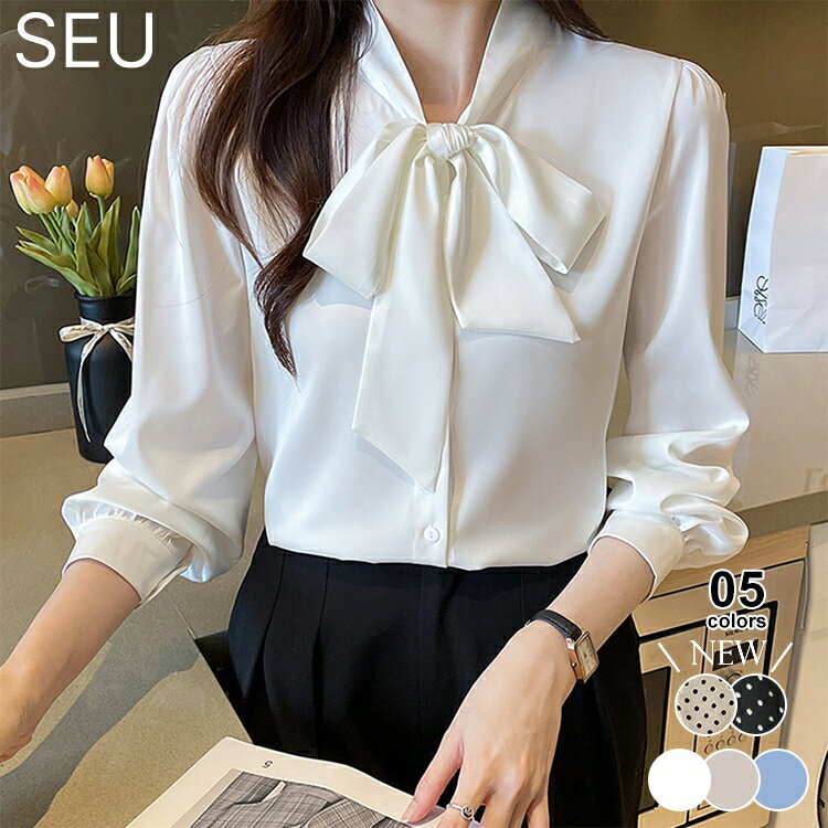 ボウタイリボンブラウス 長袖 とろみ素材 軽い ロングシーズン大活躍【クーポンで1990円!】ボウタイ ブラウス リボン 長袖 シャツ トップス レディース きれいめ 薄手 春 夏 秋 ゆったり 体型カバー フェミニン オフィスカジュアル 通勤 ビジネス ーティー 入学式 卒業式 冠婚葬祭 SEU seu25ht1010