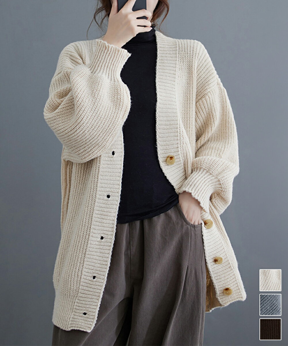 韓国風ニットトップス トップス 羽織り パフスリーブ vネックカーデ 体型カバー ゆったり 長袖 ゆるカーディ オーバーサイズ ゆるシルエット無地 ニットアウター通勤 前開きニットカーデ★3色★ベージュ グレー ブラウン カーデ カーディガン ロングカーディガン ロングカーデ 韓国風ニット 長袖無地カーディガン 韓国カーデ オフィスカジュアル お出かけ デート インスタ 撮影 アイドル★ニットカーディガン レディース アウター ワンサイズ★フリーダムsale