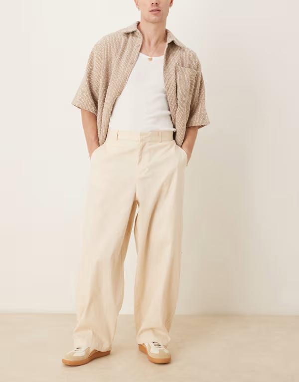 【サイズ交換無料】 エイソス メンズ ボトムス カジュアルパンツ ARCTIC WOLF【送料無料】 エイソス メンズ カジュアルパンツ ボトムス ASOS DESIGN oversized tapered linen look pants with belt in beige ARCTIC WOLF