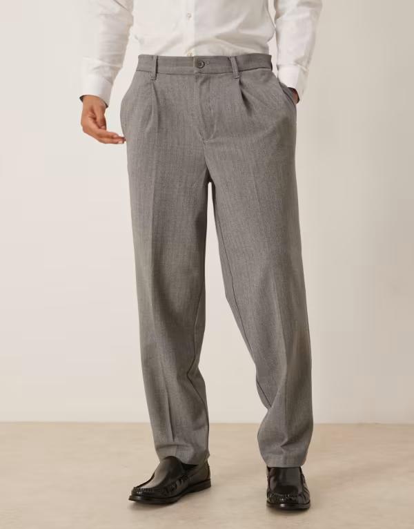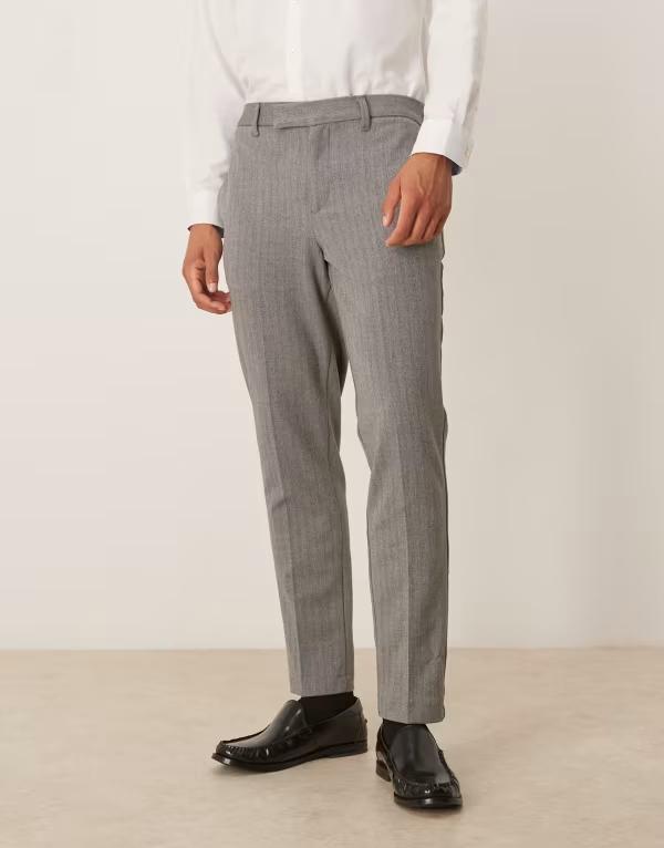 【サイズ交換無料】 エイソス メンズ ボトムス カジュアルパンツ Gray【送料無料】 エイソス メンズ カジュアルパンツ ボトムス ASOS DESIGN tapered fit wool look herringbone smart pants in gray Gray
